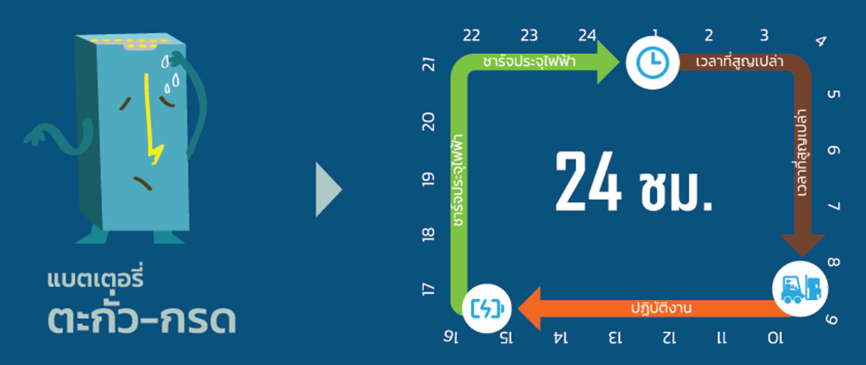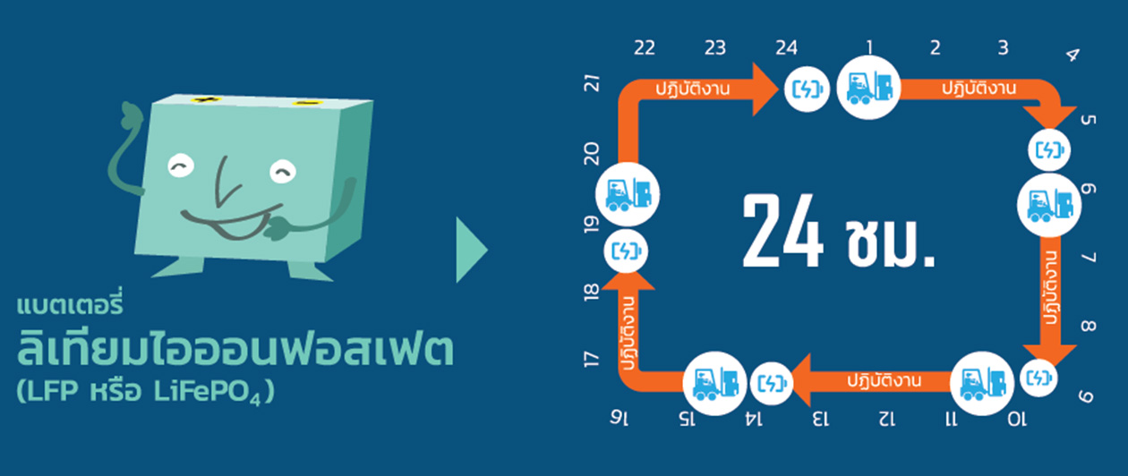 แบตฯลิเทียมไอออนฟอสเฟต จากรถโฟล์คลิฟท์ไฟฟ้า BYD ช่วยประหยัดค่าใช้จ่ายรายวัน โดยลดต้นทุนในการบำรุงรักษา ค่าพลังงานไฟฟ้า หรือแม้แต่ค่าใช้จ่ายในการเปลี่ยนแบตฯลูกใหม่