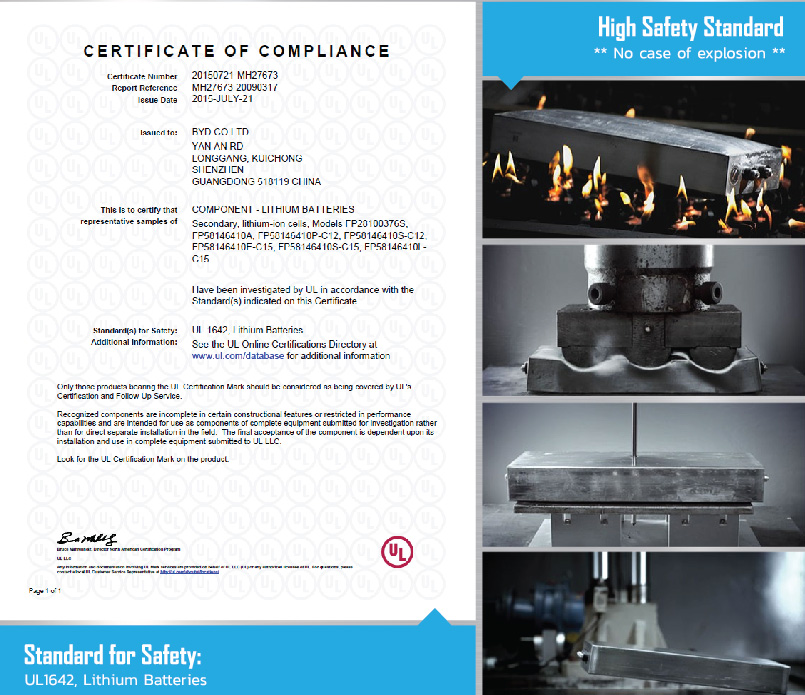| รอบการใช้งาน | หลังใช้งานแล้ว 4,000 รอบ จะเก็บประจุไฟฟ้าได้ >75% หากชาร์จประจุไฟฟ้าวันละครั้งเป็นจำนวน 4,000 รอบ DOD สามารถมใช้งานได้กว่า 10 ปี (ตามเงื่อนไขที่เหมาะสม) | ใช้งานได้ประมาณ 1,200-1,500 รอบ |